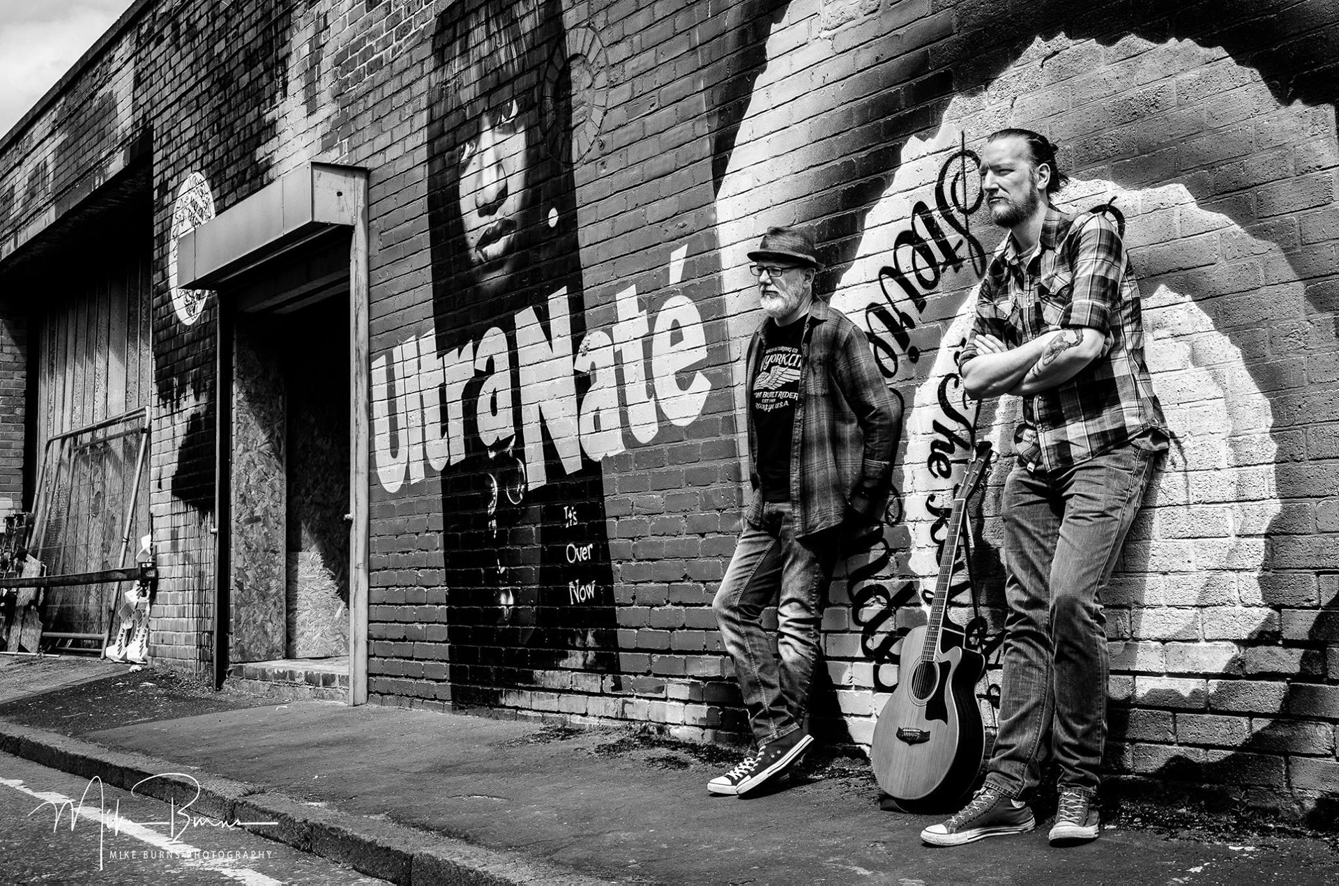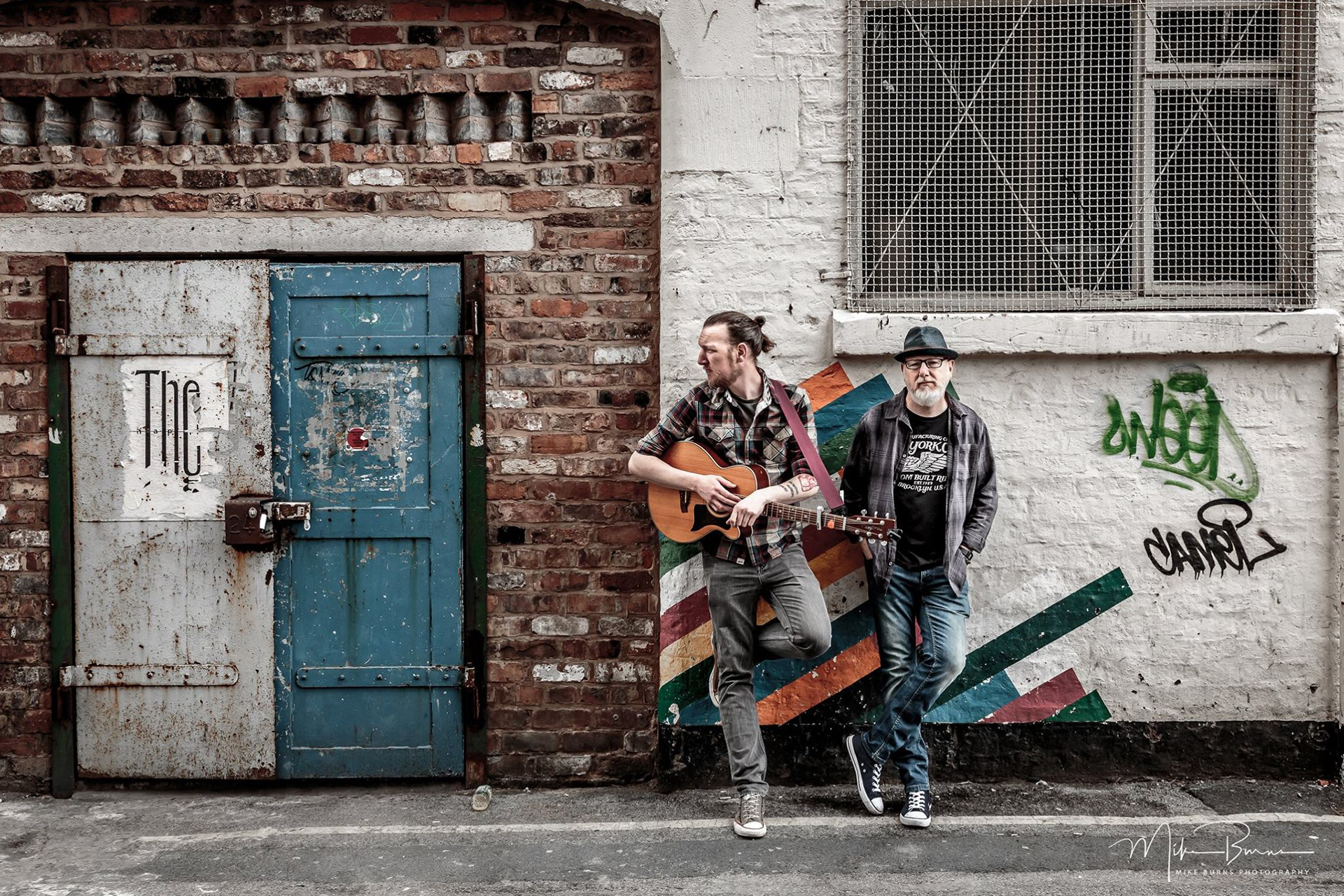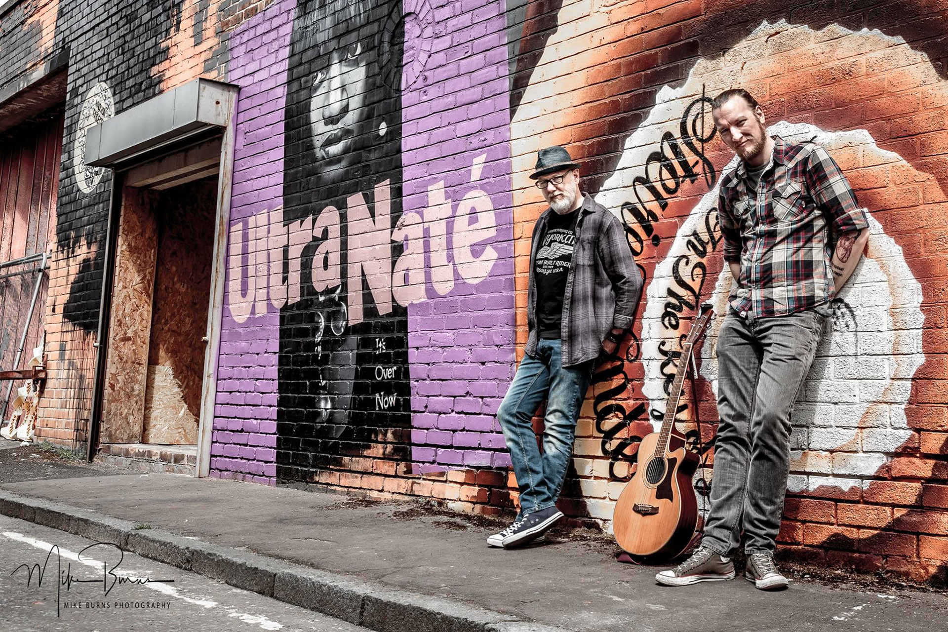 a shoot with the acoustic duo 2 bob suit photographed around the baltic triangle area of liverpool.